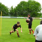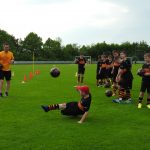 Am zweiten Tag wurde Vormittag mit neu aufgebauten Übungen trainiert, am Mittag gab es kostenlose Pizza von Baba´s Grill, auf die sich die Kids so richtig freuten, da es laut dem dicken Michi ja eigentlich Eintopf und Grütze geben sollte. So ging es gut gestärkt am Nachmittag zur großen Europameisterschaft. Zum Abschluss wurde der Dribbelstar gesucht und gefunden.