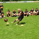 42 begeisterte Fußballkinder traten in die Fußstapfen ihrer großen Idole und wurden mit der Trainingsausrüstung ausgestattet. Campleiter Dirk und der Partner vom Intersport Stefan Eglseder begrüßten alle anwesenden Eltern und wünschten den Kids ein hammerhartes Training. Dirk`s Aussage, dass der Dicke Michi auf dem SVM Sportplatz eine Burgerfabrik errichten will, und dies die Kinder nur abwenden können, wenn Sie am Sonntagnachmittag das Spiel gegen ihre galaktischen Eltern gewinnen, sorgte für einen besonderen Anreiz. So wurde an allen Tagen eifrig trainiert, nach einem Warm Up mit Musik konnte es Los gehen. Lustige, anspruchsvolle und kuriose Übungen wurden durchlaufen, bis es am Abend hieß, wer ist der Elfmeterkönig.