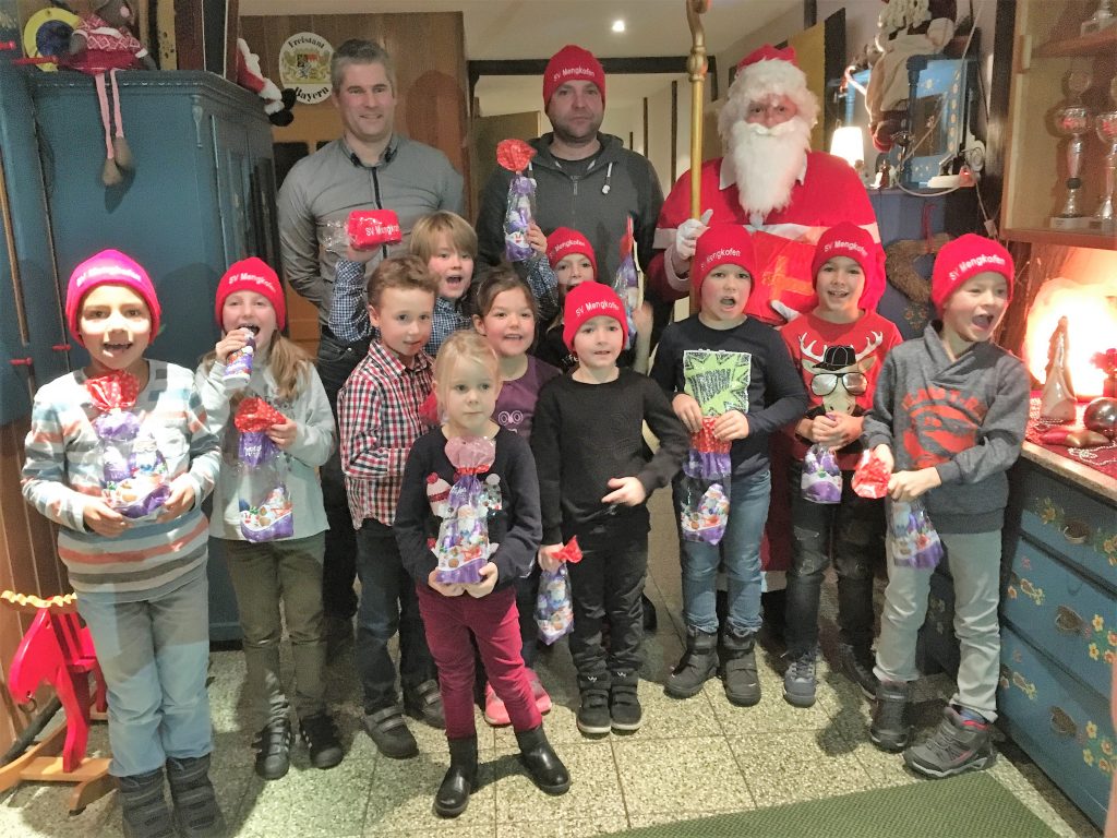 Am Samstag gab es bei der Weihnachtsfeier der F2-Jugend des SV Mengkofen im Gasthaus „zum Sepp“ in Ettenkofen nur fröhliche Gesichter. Die beiden Trainer und Betreuer, Wolfgang Vilsmeier und Bernhard Schuster, hatten dieses vorweihnachtliche Treffen organisiert und die Kinder warteten an diesem Nachmittag gespannt auf den Besuch des Nikolauses. Der hatte nur lobende Worte für die kleinen Kicker, denn sowohl beim wöchentlichen Training, als auch bei den Spielen wird immer mit vollem Einsatz und mit der entsprechenden Fairness gekämpft. Der Himmelsbote hatte von allen Aktiven etwas zu erzählen und hob dabei auch die große Kameradschaft und das Wir-Gefühl innerhalb der Mannschaft besonders hervor. Der Nikolaus hatte aber auch für die Eltern ein großes Lob, die in den Heimspielen im Verkaufsstand ganze Arbeit leisten und dabei auch für die recht magere Mannschaftskasse einen finanziellen Beitrag leisten. Er war deshalb sehr zufrieden, blickte auf einen recht guten Saisonverlauf zurück, bei dem er das Erreichen des Finales in der Nachwuchsrunde im Hallenfussball als größten Erfolg bezeichnete. Nach diesen lobenden Worten gab es für den SV-Nachwuchs eine Mütze in den SV-Farben und der Mann mit Bischofsmütze und weißen Bart hatte auch noch kleine Süßigkeiten im großen Sack die er verteilte. Nach diesem himmlischen Auftritt freuten sich die Kids auf Schnitzel und Pommes und das gemeinsame Essen war gleichzeitig der Abschluss einer gelungenen Weihnachtsfeier. Die beiden Betreuer machten noch auf das wöchentliche Hallentraining in der Turnhalle aufmerksam, dass jeden Freitag um 16 Uhr stattfindet und bei dem auch Buben und Mädchen im Alter von sechs bis acht Jahren teilnehmen können, die noch nicht dem Verein angehören.