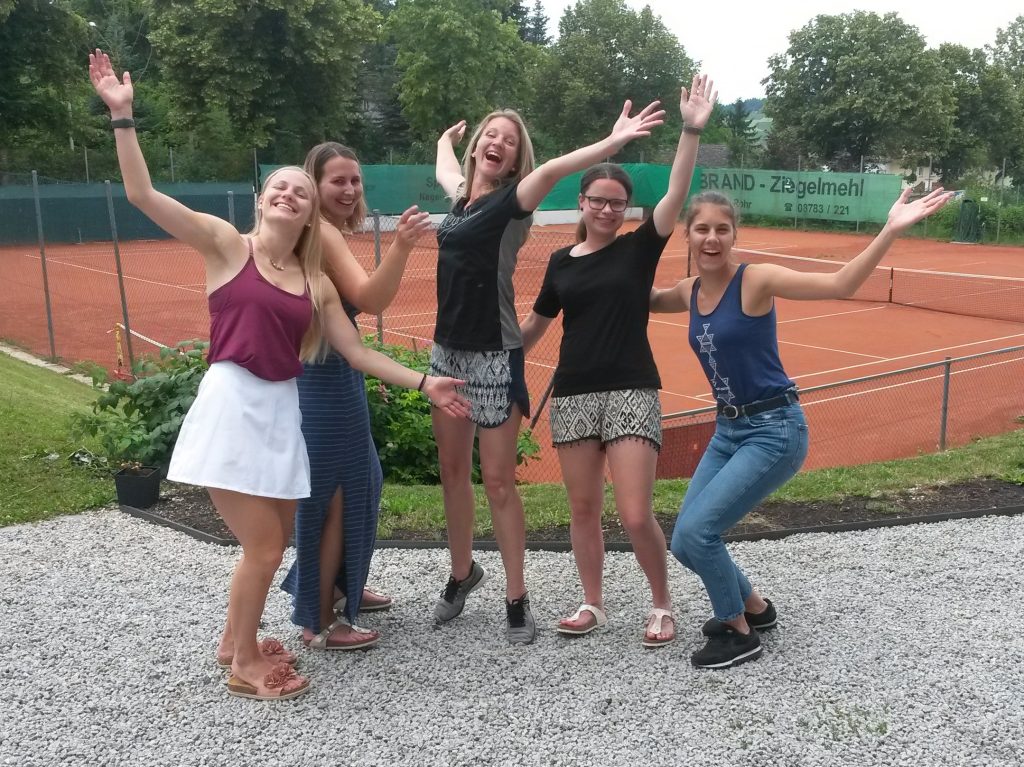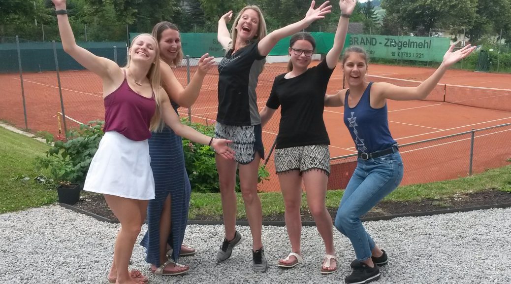 Am 23. Juni hatten das Damenteam des SV Mengkofen schon das letztes Saisonspiel, in dem sie als Tabellenführer auf Verfolger Dingolfing trafen. Da man nur einen Punkt Vorsprung hatte, durfte man keinesfalls verlieren, um die Spitzenposition zu verteidigen. Zissi Altweck macht dabei mit ihrer Gegnerin wenig Federlesen, und schickte sie, nach nicht allzu langer Spielzeit, klar 6:0, 6:1 geschlagen vom Platz. Sophia Guggenberger konnte ihrer schlaggewaltigen Kontrahentin dagegen nicht genügend Paroli bieten, und unterlag mit 2:6, 2:6 allerdings etwas zu hoch. Die vom Trainer geforderte Maßgabe, intelligent zu spielen, setzte Lisa Atzberger diesmal perfekt um, und ließ ihrer Gegenüber beim 6:3, 6:3-Erfolg keine wirkliche Chance. Den entscheidenden dritten Einzelsieg auf dem Schläger hatte Steffi Simeth, bei 6:2, 4:1-Führung, und die Gastgeber waren schon bereit zu feiern. Aber man weiß ja, was Tennis so spannend macht, denn eigentlich ist nur der letzte Punkt entscheidend. Und so musste sie sich ihrer immer stärker und fehlerfreier spielenden Gegnerin am Ende doch noch im Matchtiebreak geschlagen geben. Im Doppel setzte Trainer W.Otte, wissend dass ein Sieg reicht, auf die zuletzt recht erfolgreichen Paarungen. S.Guggenberger/S.Simeth konnten sich dabei, trotz harter Gegenwehr, gegen das starke Einser-Doppel der Gäste nicht durchsetzen und unterlagen, allerdings unverdient deutlich, 2:6, 0:6, womit alle Hoffnungen auf Lisa Atzberger/Zissi Altweg ruhten. Das Zweier-Doppel spielte zwar mit gelegentlichen „Aussetzern“, aber insgesamt doch meist überlegt und souverän. Atzberger/Altweck ließen sich auch von den zwischenzeitlich von außen ins Spiel gebrachten Diskussionen um den Spielstand nicht irritieren, und holten einen überzeugenden 6:4, 6:2-Sieg zum mehr als verdienten 3:3-Endstand. Mit diesem ersten „Punktverlust“ der Saison, der in dieser Situation eigentlich quasi ein Punktgewinn war, blieb das Damenteam des SV Mengkofen an der Tabellenspitze, und kann den Meistertitel in der Kreisklasse 1 feiern. Es spielten heuer Steffi Simeth, Sophia Guggenberger, Zissi Altweck, Lisa Atzberger, Theresa Krzok, Hannah Murr und Johanna Schiehandl.