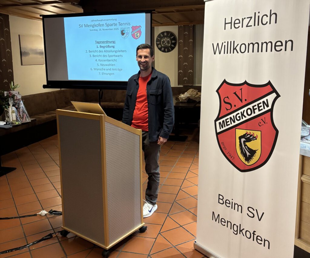 Am Sonntag, den 16.11.2025 trafen sich die Tennisler wieder zu ihrer Jahreshauptversammlung. Abteilungsleiter Johannes Buchner konnte dazu neben 40 Mitgliedern auch den ersten Bürgermeister Thomas Hieninger sowie die SVM-Vorstände Lothar Köglmeier und Michael Schmerbeck begrüßen. Auch heuer wurden wieder per Powerpoint-Präsentation auf einer großen Leinwand die Themen optisch unterlegt. Gleich zu Beginn lobte Buchner sein hervorragendes Team in der Abteilungsleitung, das mit Erfahrung und Kompetenz viel Last von seinen Schultern nimmt. Auch sprach er der Gemeinde und dem Hauptverein sehr großen Dank für die tolle Zusammenarbeit und Unterstützung aus, die die Tennisabteilung in vielen Bereichen erfährt.