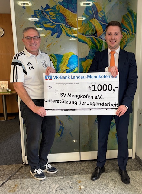 Zu einem besonders erfreulichen Termin kam es heute in den Räumen der VR Bank Landau/Mengkofen. Herr Schaub, Regionalgebietsleiter der Bank, überreichte dem 1. Vorstand des SV Mengkofen,