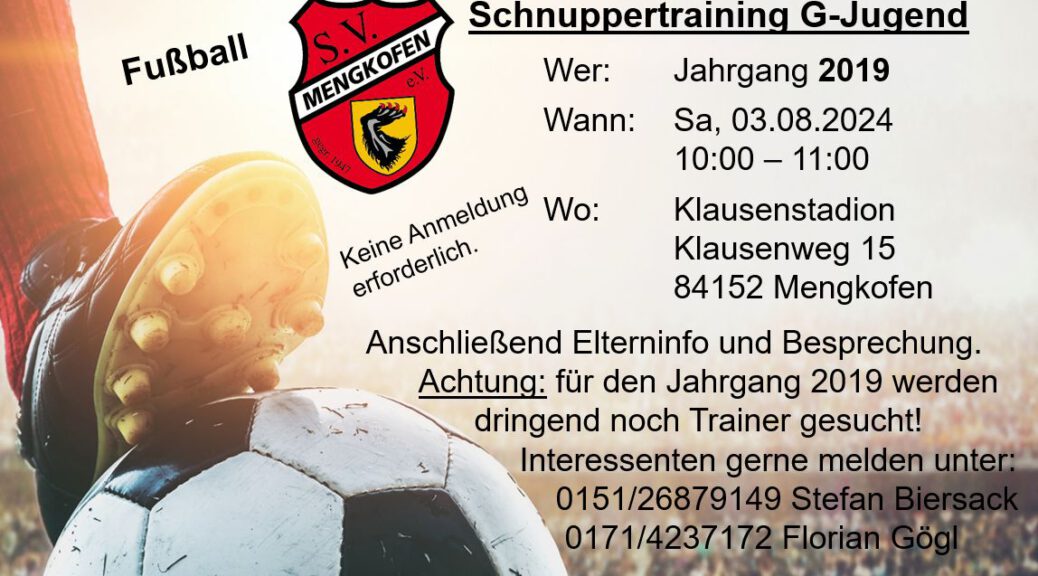 mit der Straubinger Fußballschule. Am letzten Maiwochenende fand ein Highlight im Klausenstadion beim SV Mengkofen statt. Die Straubinger Fußballschule unter der Anleitung von Markus Heiss, war drei Tage anwesend und gestaltete für rund 35 junge Fußballer aus der Region ein rundum gelungenes Fußball Camp mit viel Spaß und Freude. Trainiert wurden Technik, Geschicklichkeit mit Ball, Schusskraft, Koordination und das neue altersgerechte BFV Minifußball 4 Format. Dabei spielen kleinere Mannschaften in einem 4:4 auf 2 kleine Mini-Tore je Seite gegeneinander. Mit…